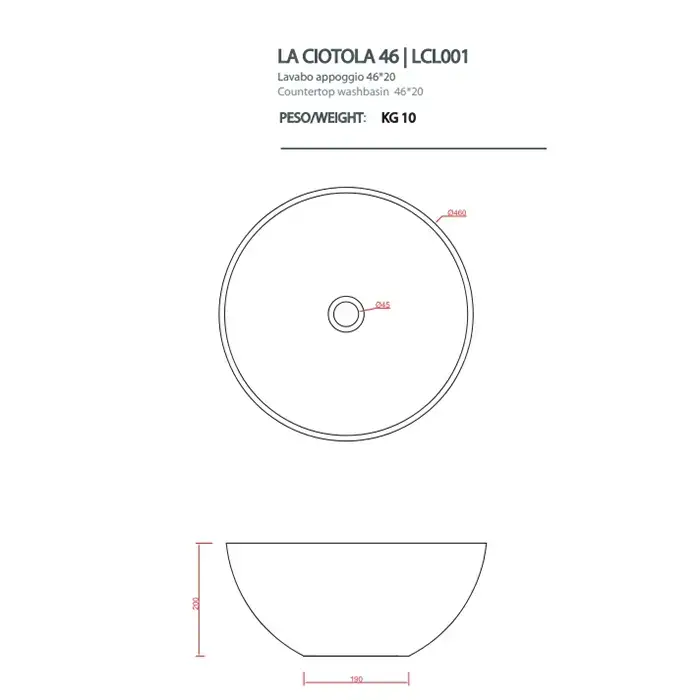 ARTceram LA CIOTOLA Раковина 46 см, накладная, без отв., без слива-перелива, цвет: белый