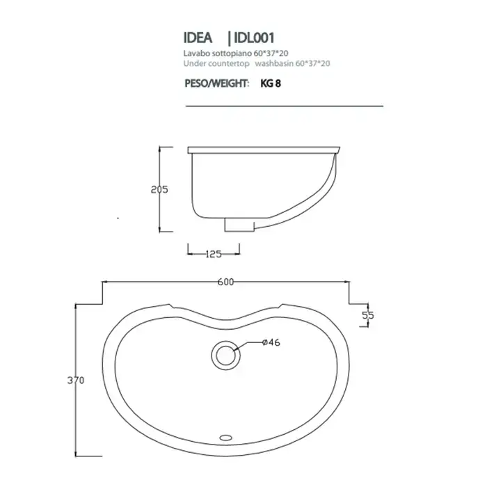 Artceram WASHBASINS IDEA Раковина встраиваемая снизу 60Х37 см, без отв под смеситель, без крепежа ACA001, цвет белый.