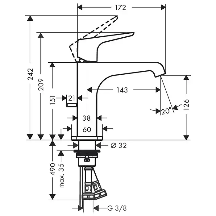 AX Смеситель для раковины однорычажный, излив 143 мм, с донным клапаном, цвет Шлифованная бронза