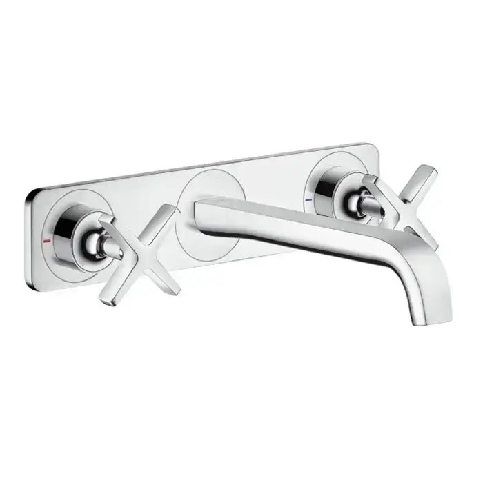 Axor Citterio E, Смеситель для раковины, на 3 отверстия, с розетками и изливом 220 мм, настенный монтаж, СМ, цвет: хром