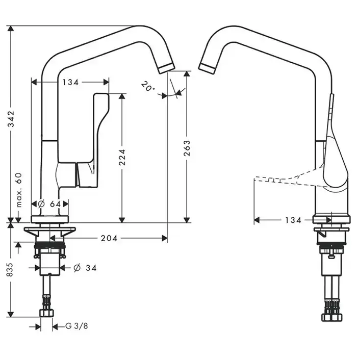 Axor Citterio Смеситель для кухни, однорычажный, на 1 отв, излив: 204мм, цвет: под сталь