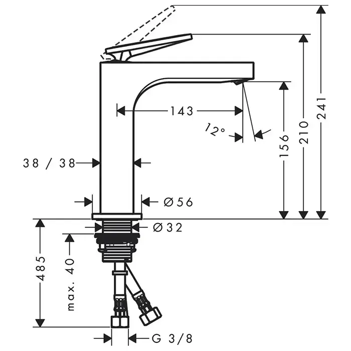 AX Citterio Смеситель для раковины 160, с незап. сливом, с текстурой, хром