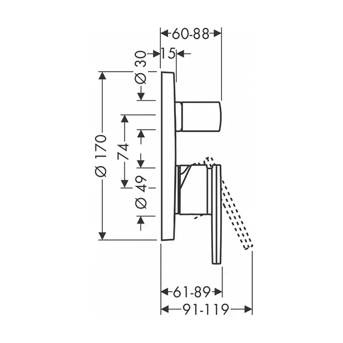 AX Citterio Встраиваемый смеситель для ванны однорычажный с защитой по станд. EN1717 (внешняя часть), цвет: хром
