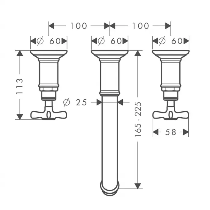 AX Montreux Смеситель для раковины настенный на 3 отв., излив 165-225мм, с незапираемым сливным набором, цвет: шлифованный никель