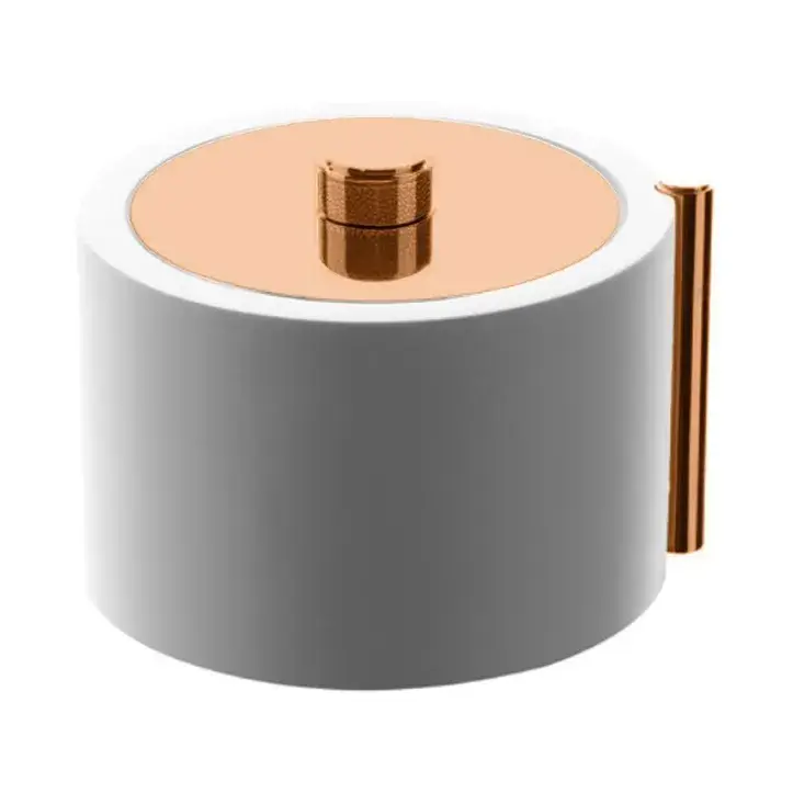Банка настольная с крышкой белый матовый/розовое золото