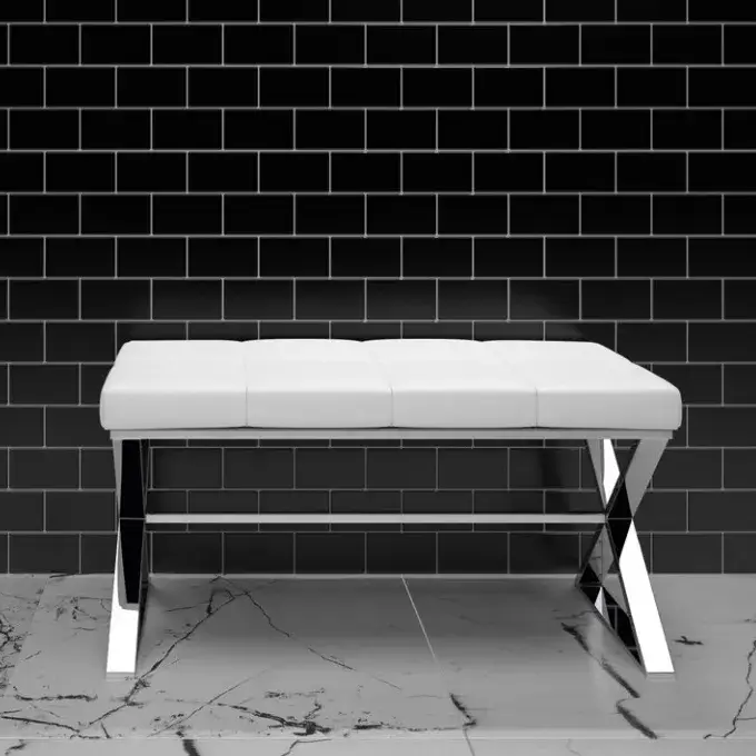 Банкетка для ванной комнаты Decor Walther BENCH 0509604 цвет-сталь полированная/эко-кожа белая