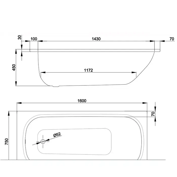 BETTE CLASSIC Ванна прямоугольная 1600х750х450 мм., с шумоизоляцией, с 2 отв под ручки, цвет белый
