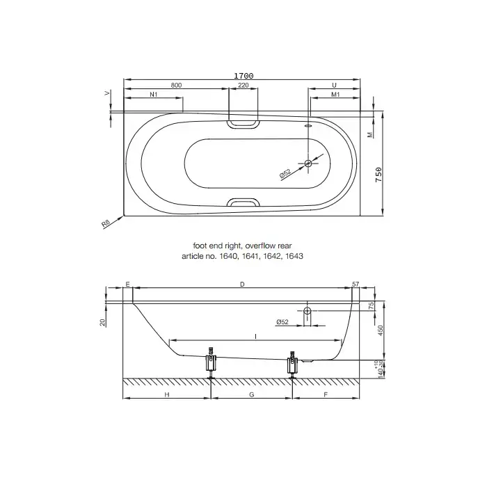 BETTE Comodo Ванна 170х75х45 с шумоизоляцией, область ног ванны справа, перелив сзади (для удлиненного слив-перелива) белая