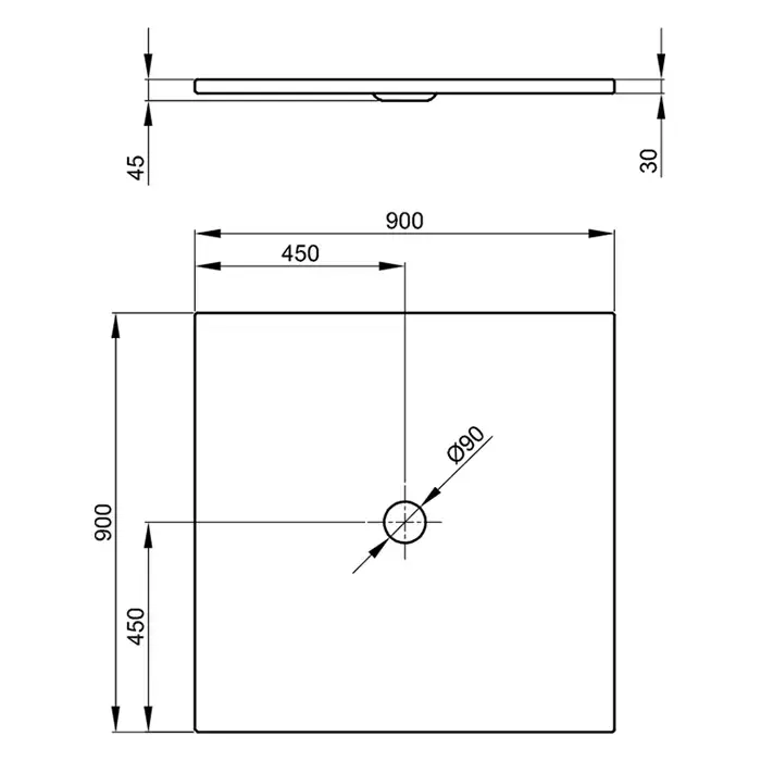 BETTE FLOOR Душевой поддон квадратный 900х900 мм., диаметр сливного отверстия 90 мм., с шумоизоляцией, цвет белый