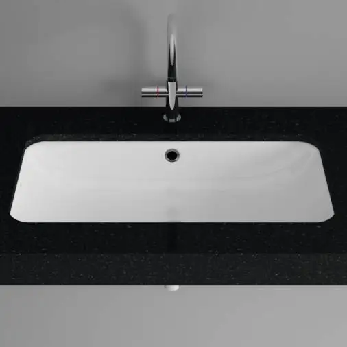 BETTE One Раковина встраиваемая снизу , квадратная 767х400х130 мм, эм. сталь. без отв.под смесит. c переливом, белая