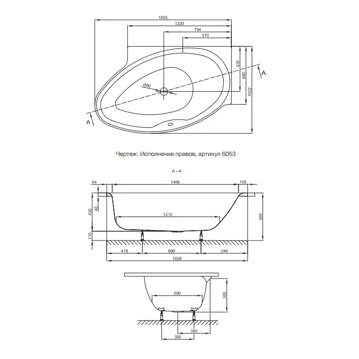 Bette Pool I Ванна 161х102х45см., правосторонняя, встраиваемая, BetteGlasur® Plus, цвет: белый