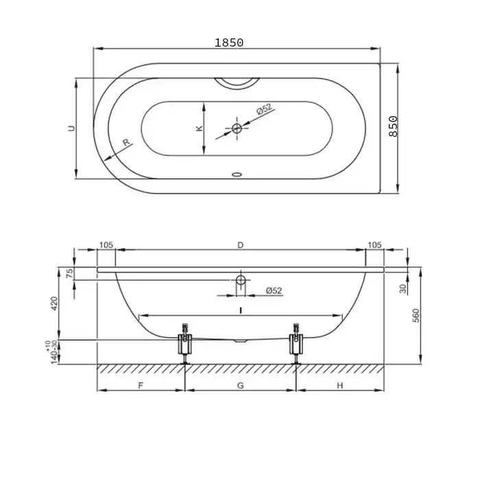 Bette Starlet II Ванна с шумоизоляцией встраиваемая, 185х85х42см, BetteGlasur® Plus, цвет: белый