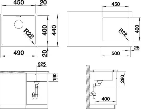 Blanco Andano Кухонная мойка, встр. снизу 49x44x19h, цвет: сталь 522963