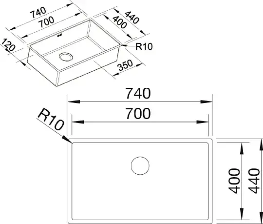 Blanco Claron Кухонная мойка, встр. снизу 74x44x19h, цвет: сталь 521581