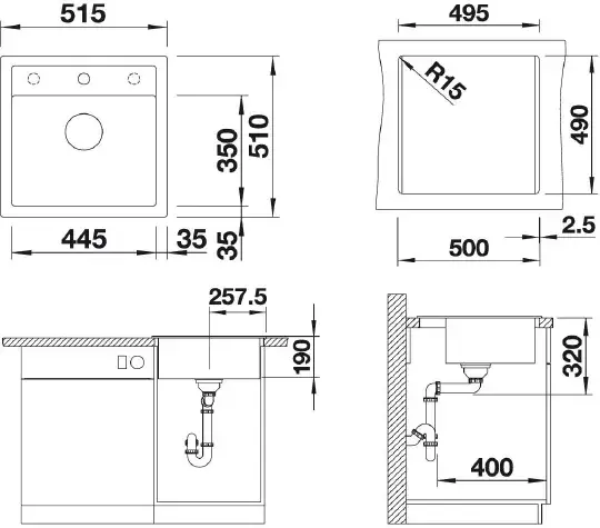 Blanco Dalago Кухонная мойка, встр. сверху 51,5x51x19h, цвет: черный 518521