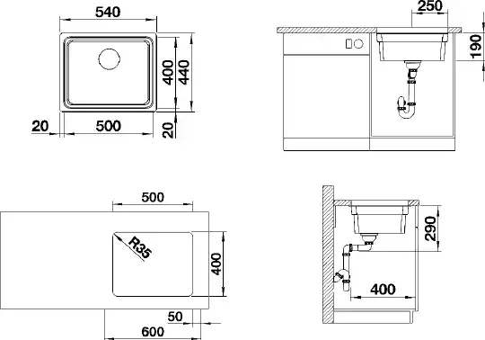 Blanco Etagon Кухонная мойка, встр. снизу 54x44x19h, цвет: сталь 521841