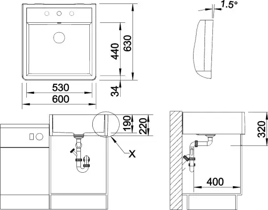 Blanco Panor Кухонная мойка, встр. сверху 60x63x19h, цвет: белый 514486