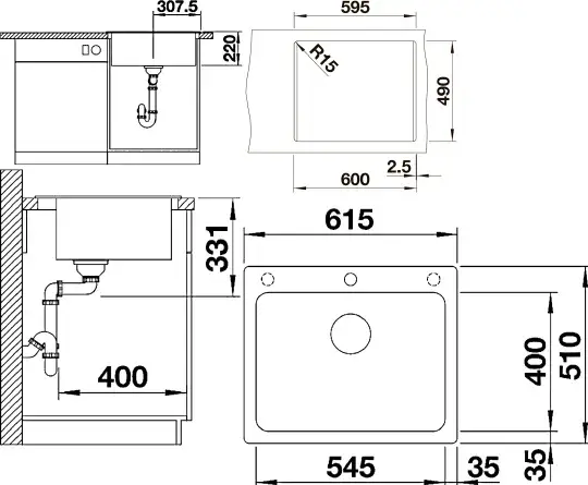 Blanco Pleon Кухонная мойка, встр. серху 61,5x51x22h, цвет: черный 521678