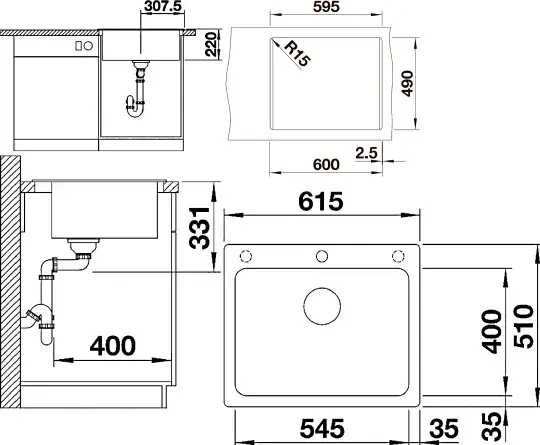 Blanco Pleon Кухонная мойка, встр. серху 61,5x51x22h, цвет: черный 521689