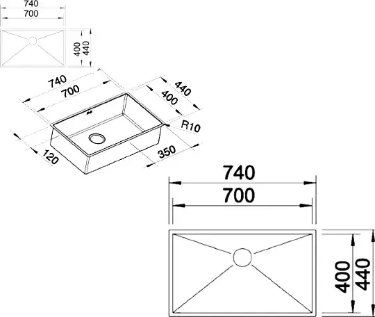 Blanco Zerox Кухонная мойка, встр. снизу 74x44x18,5h, цвет: сталь 521593