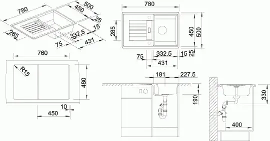 Blanco Zia Кухонная мойка, встр. сверху 78x50x19h, цвет: серый 514725
