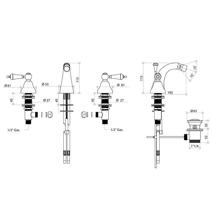Bongio Capri Смеситель для биде на 3отв., цвет золото 17503OR00