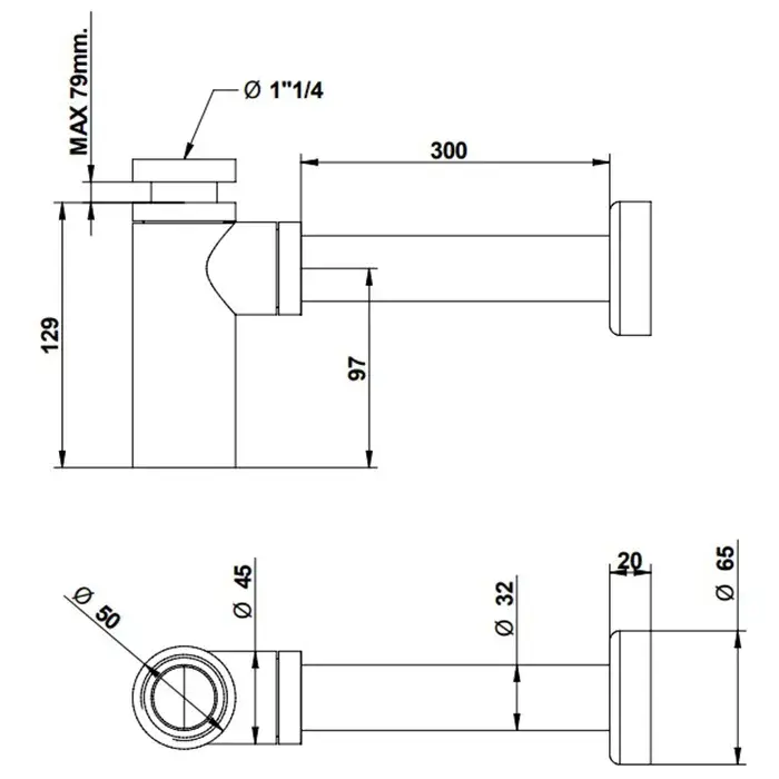 Bongio Complements Сифон бутылочный под донный клапан 1.1/4 с трубкой 30 см, цвет хром 00065CR00