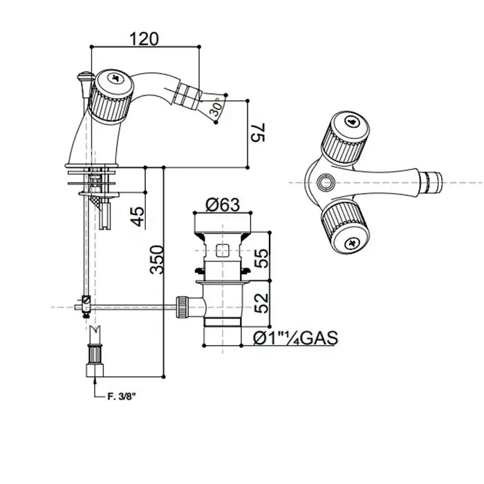 Bongio Cristallo Смеситель для биде на 1 отв., цвет золото/cristallo Bianco 00 04522OR00