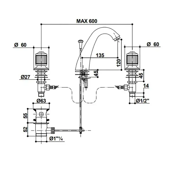 Nicolazzi Cristallo Cмеситель для умывальника однорычажный, встраиваемый, излив: 175мм, цвет: хром
