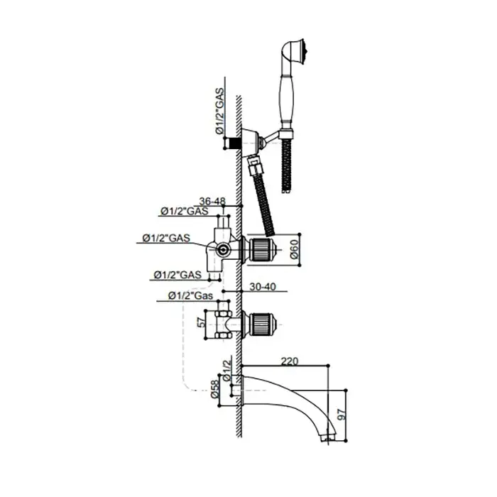Bongio Cristallo Смеситель для ванны встроенный, с ручной лейкой, цвет: хром/белый 04530CR00D