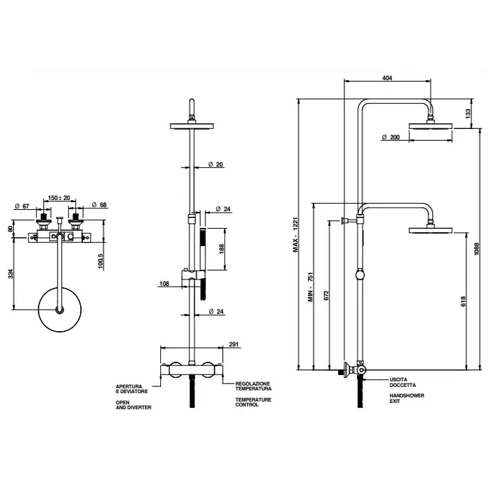 Bongio Душевая стойка с термостатическим смесителем, ручным душем и шлангом, цвет хром 32557CRRDPR