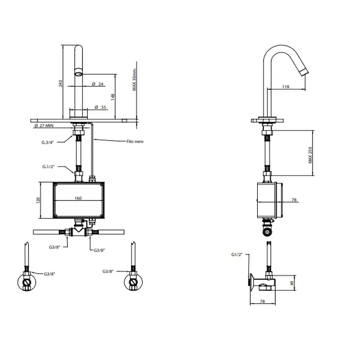 Bongio Elettronici Сенсорный смеситель для раковины, цвет черный матовый 30501NEEL