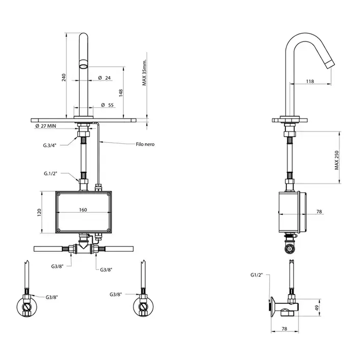 Bongio Elettronici Сенсорный смеситель для раковины, цвет черный матовый 30501NEEL