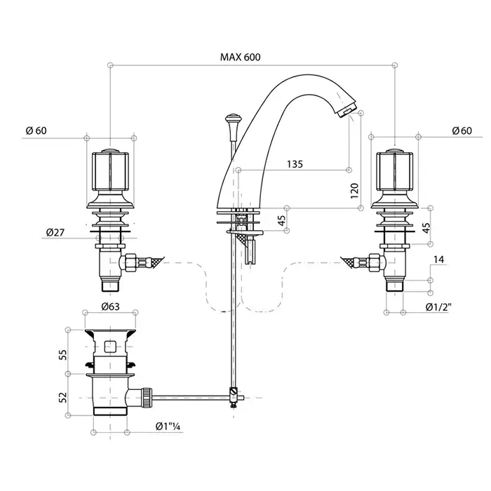 Bongio Fleur Noir Смеситель для раковины на 3отв, цвет хром/черный фарфор 12501CR00