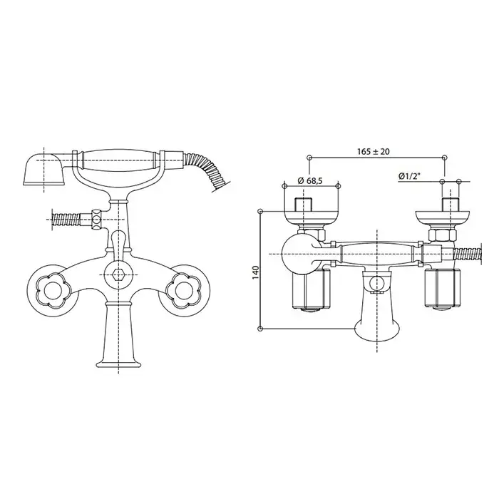 Bongio Fleur Noir Смеситель для ванны с ручным душем, цвет хром/черный фарфор 12526CR00