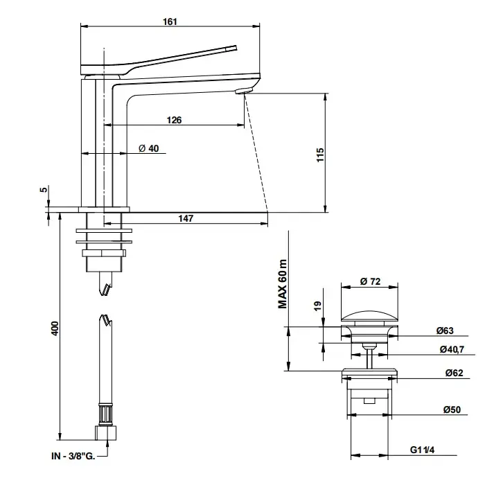 Bongio Gio Смеситель для раковины на 1 отв., излив 12,6 см, цвет хром 80721CRPR