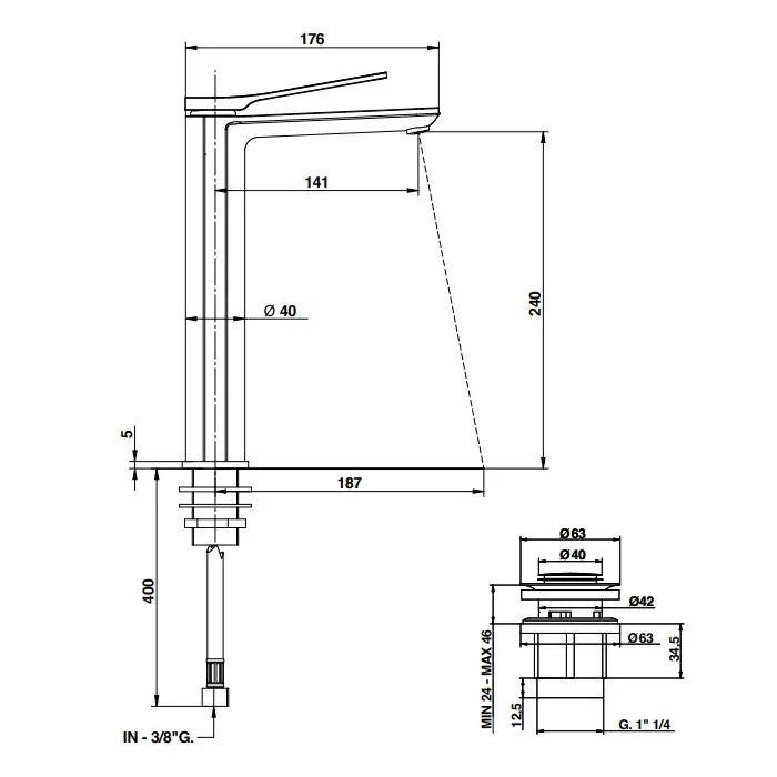 Bongio Gio Смеситель для раковины высокий 28 см на 1 отв., излив 141 см, цвет хром 80520CRPR