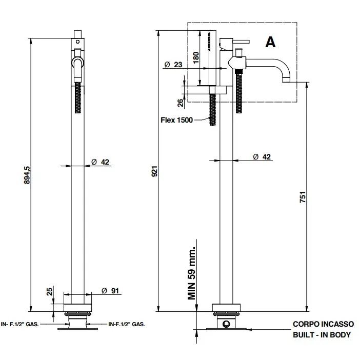 Bongio Gio Смеситель для ванны с душем напольный 89,9 см, излив 20 см, цвет: хром 68534CR0DPREU