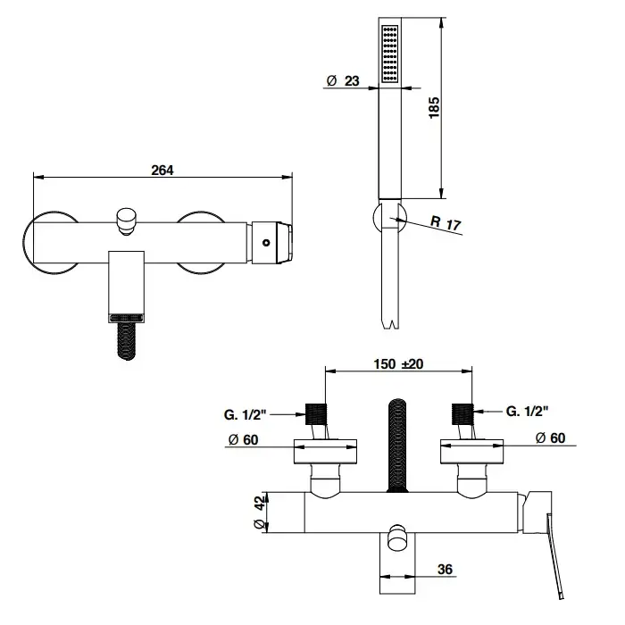Bongio Gio Смеситель настенный для душа на 2 отв. с ручной лейкой, цвет: хром 80526CR0DPR
