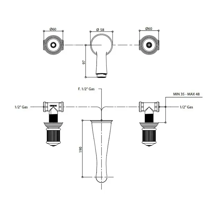 Bongio Impero Смеситель для раковины, настенный, цвет: хром/Swarovski 06538CR00