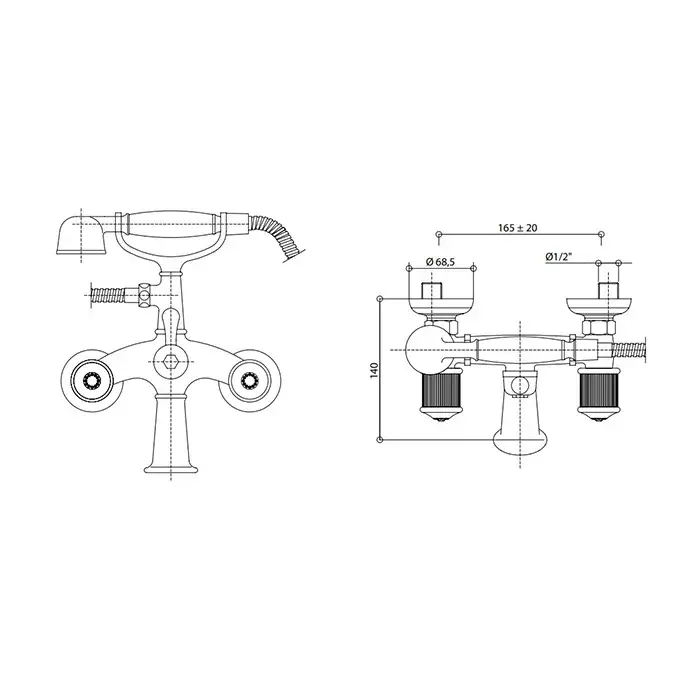Bongio Impero Смеситель для ванны настенный на 2 отв.с ручной лейкой, цвет хром/Swarovski 06526CR00