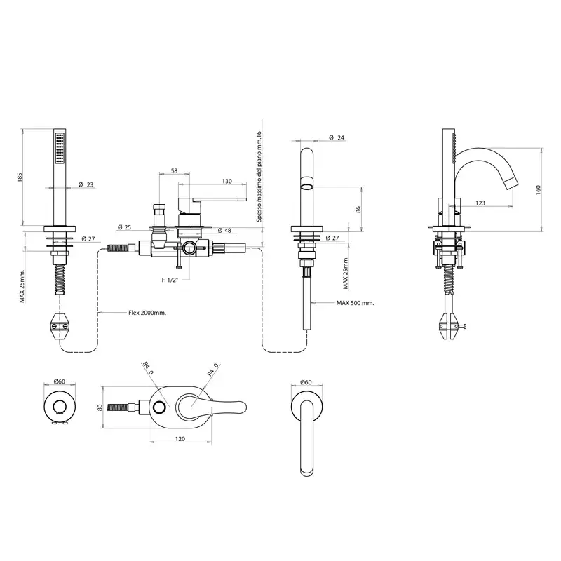 Bongio O'Clock Green Смеситель для ванны, на борт ванны, цвет: белый матовый 14531BI0D