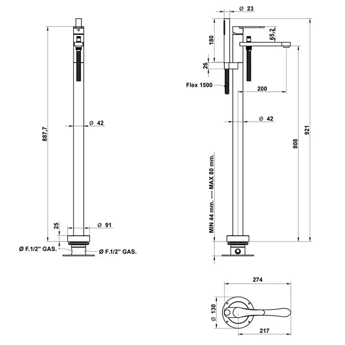 Bongio O'Clock Green Смеситель для ванны напольный 88,77 см, цвет: черный матовый 14534NE0DEU