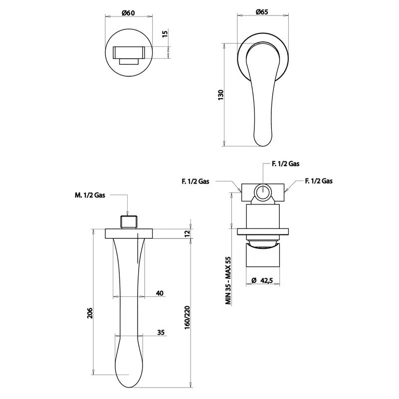 Bongio O'Clock Green Встраиваемый смеситель для раковины, излив 220 см, цвет хром 14538CR22GR