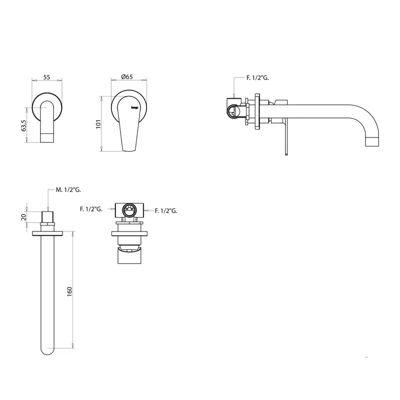 Bongio Pi7 Встраиваемый смеситель для раковины, излив 16 см, цвет: хром 07538CR16PR