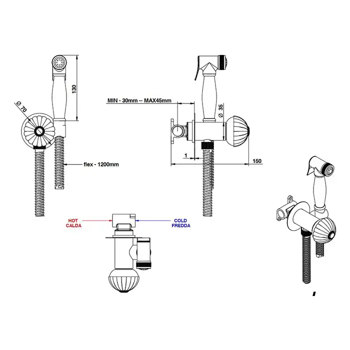 Bongio Radiant Гигиенический душ с прогрессивным смесителем, шланг 1200 см, цвет золото 02916OR00