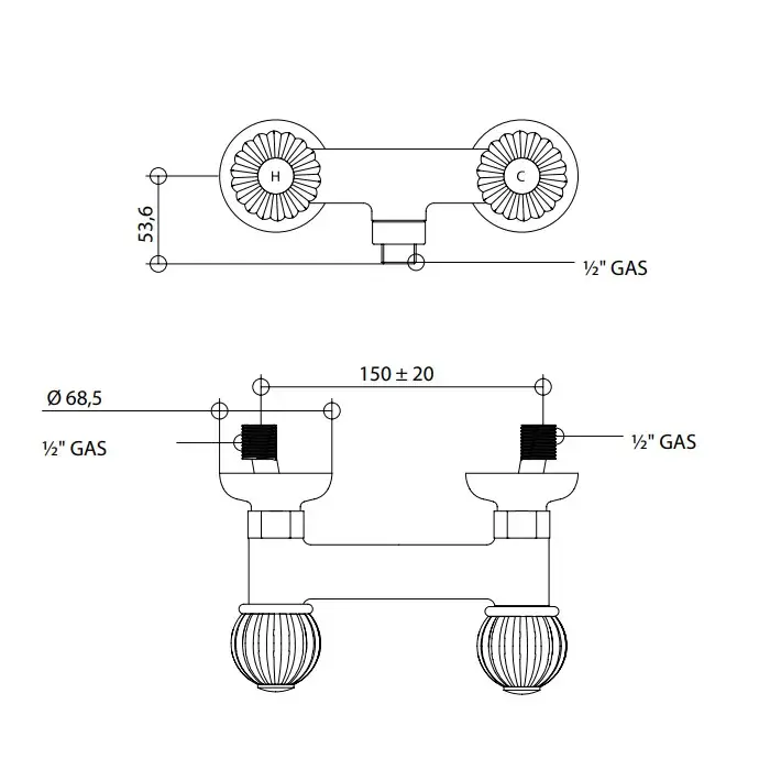 Bongio Rivoli Переключатель на 2 источника, цвет хром/Cristallo 00 05525CR00