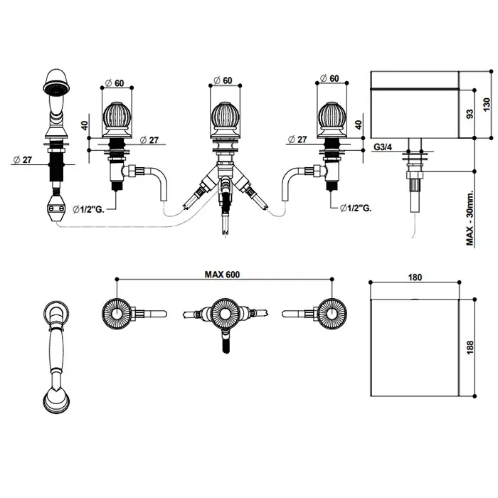 Боковой душ и форсунки