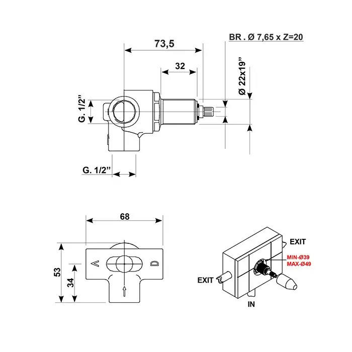Bongio Rivoli Внутренняя часть для смесителя на 2 выхода 94910002