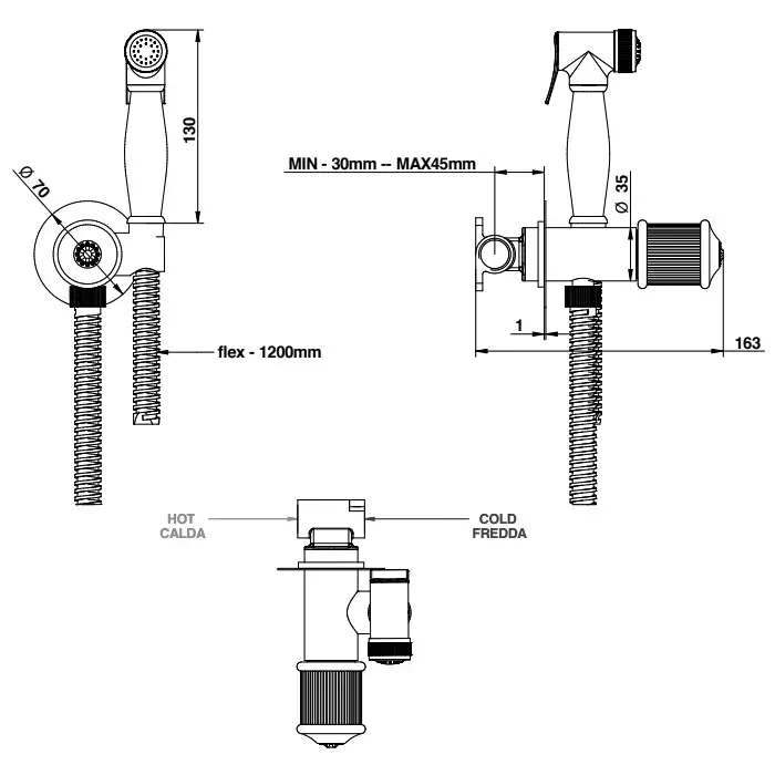Bongio Смеситель прогрессивный, с гигиенич. душем, держателем, цвет хром 06916CR00